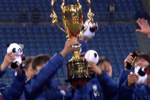 体育资讯11月18日讯 熊猫杯颁奖典礼,2胜1负的韩国队捧起冠军奖杯,中国队1胜1平1负收获亚军银盘。