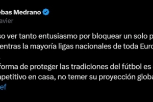 特巴斯写道:“看到人们如此热衷于去阻止一场海外比赛,真是令人感到好奇,而与此同时,整个欧洲的大多数国内联赛都在为生存而挣扎。”